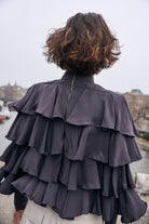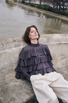 - Voluminous layered ruffle top.