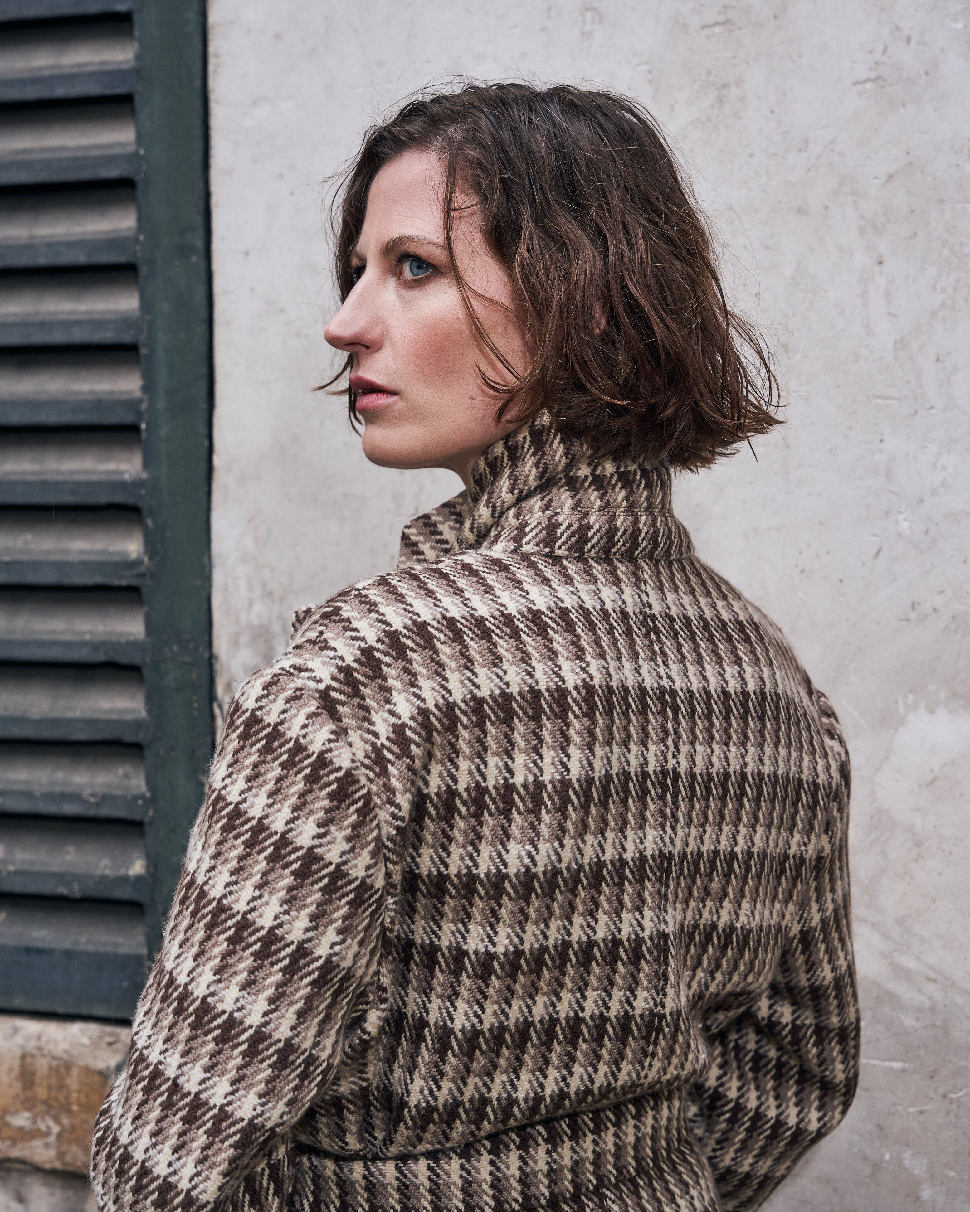 Our houndstooth coat is made with natural wool from nomadic pastoralists called Gaddis. The sheep graze at the foot of the Himalayas, in the North of India. The Gaddis traverse the ranges around the village from summer to fall. The entire process of cleaning and sorting the wool is made by women. The carded wool is hand spun at home.